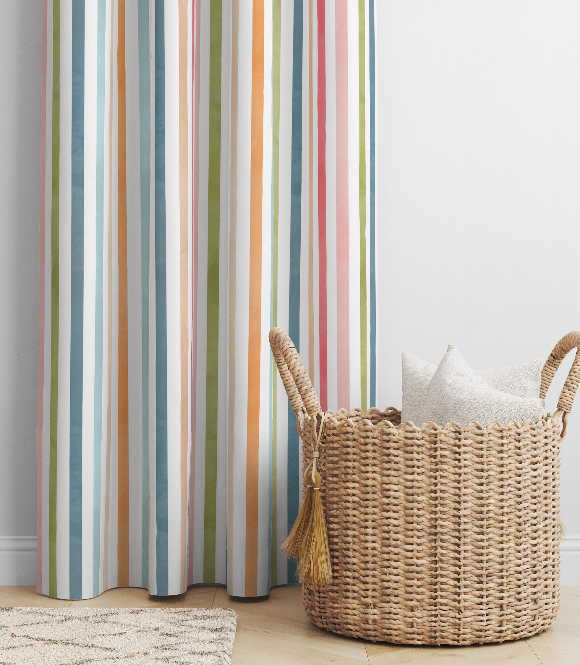 Evinizde modern ve şık bir görünüm için ideal seçim: Milbay Pastel Çizgili Desenli Fon Perde. 🏠🌟