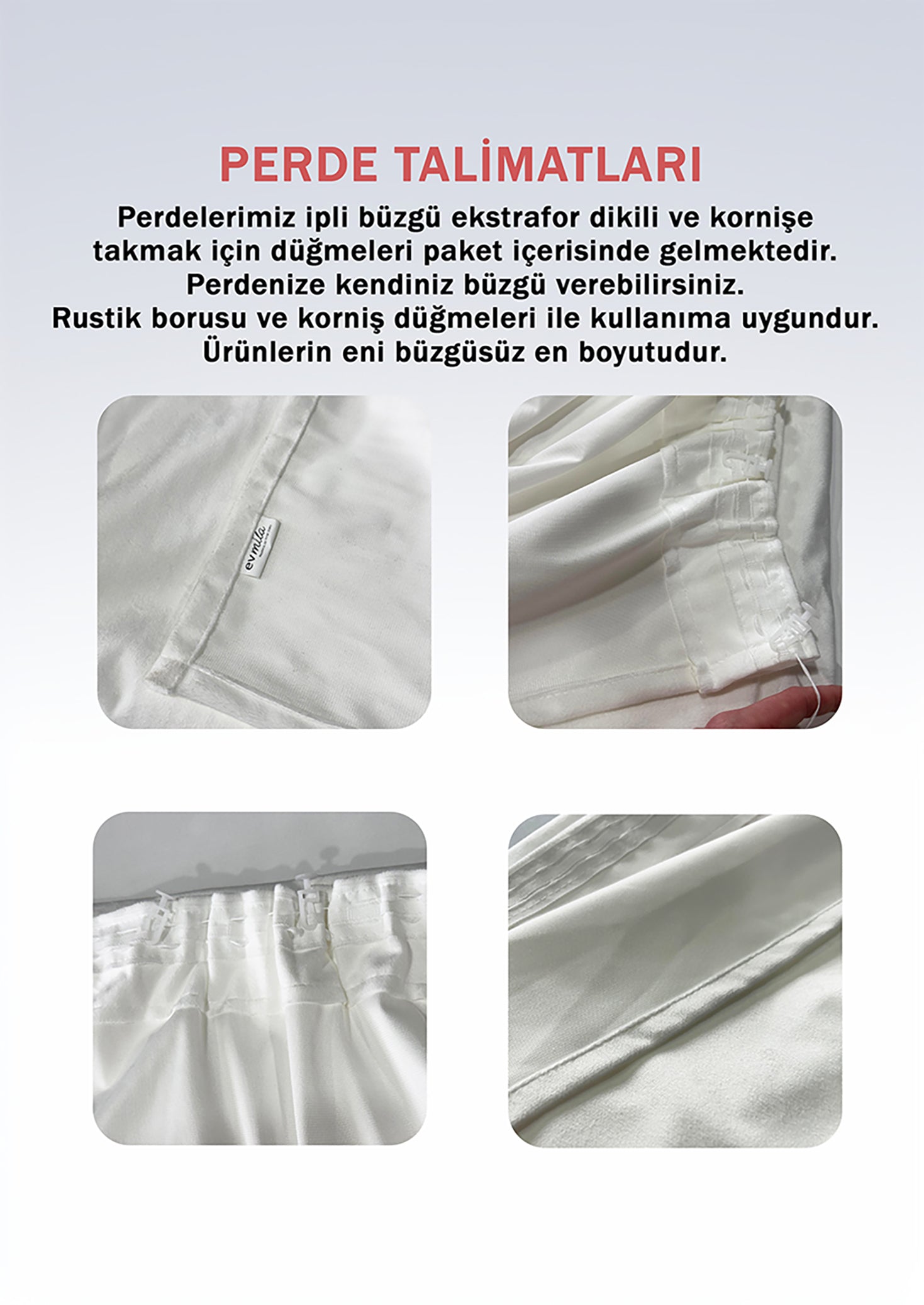 ✅ Perdenizin yanları düz temiz dikiştir. Dikiş sırasında en ölçülerinde maksimum %3 sapma olabilir. 📏
