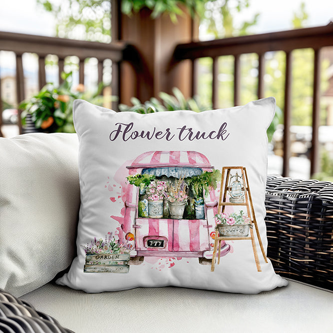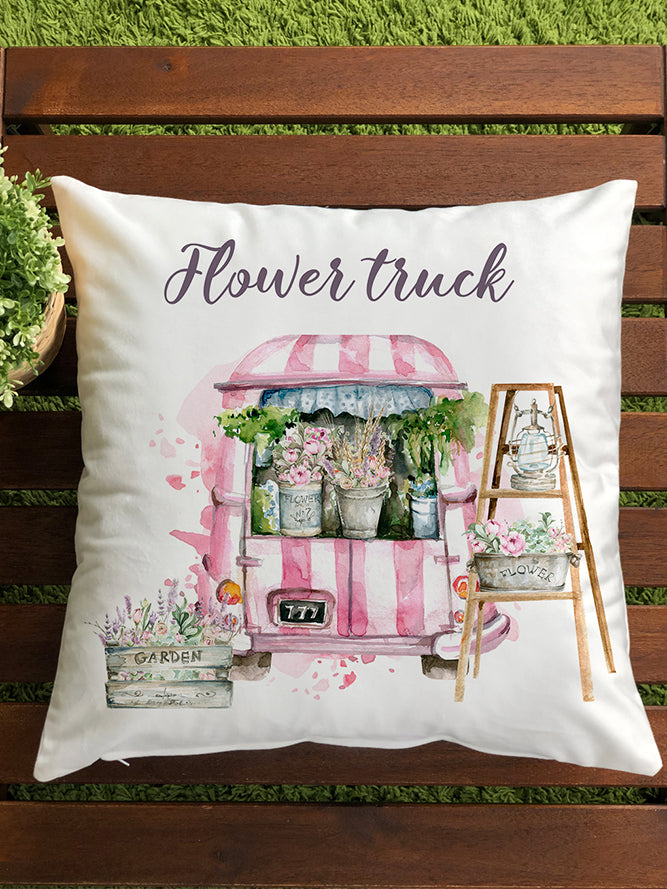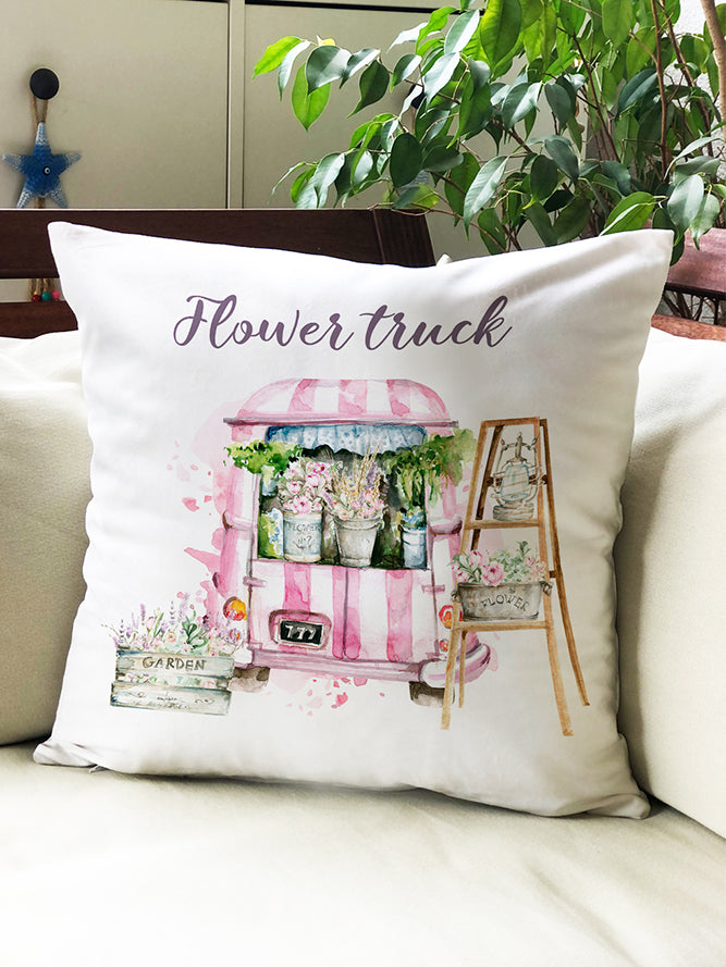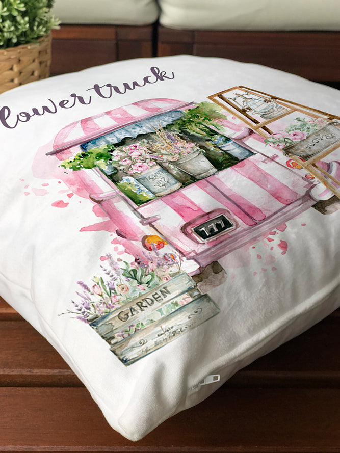 Milbay Çiçek Kamyonu İllüstrasyonlu Desenli Kırlent Kılıfı