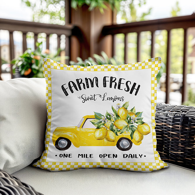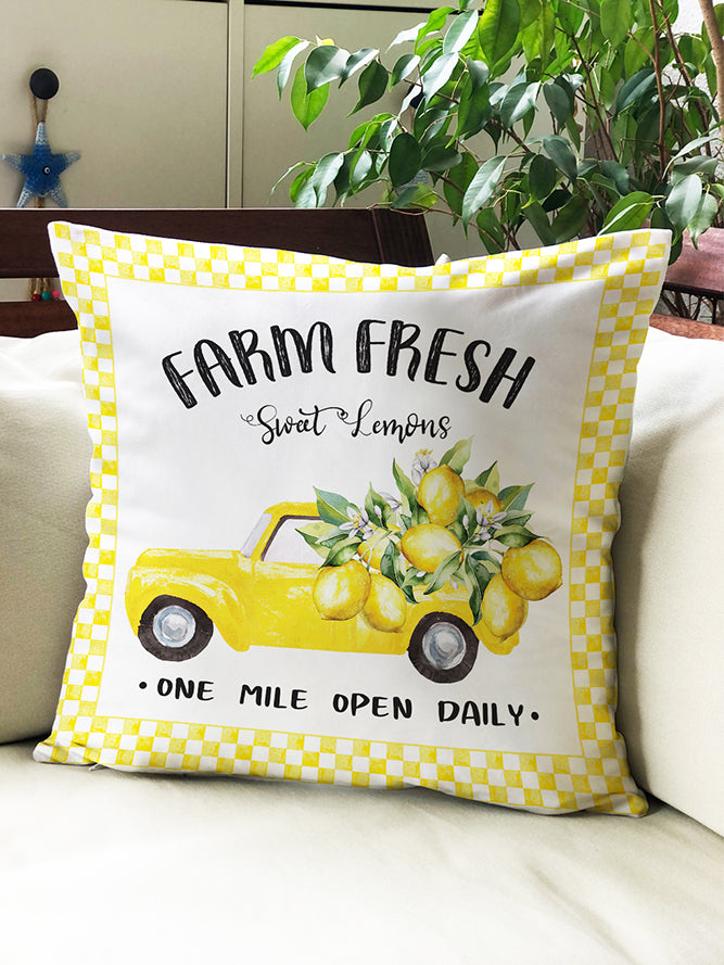 Milbay Limonlu Çiftlik Temalı Desenli Kırlent Kılıfı