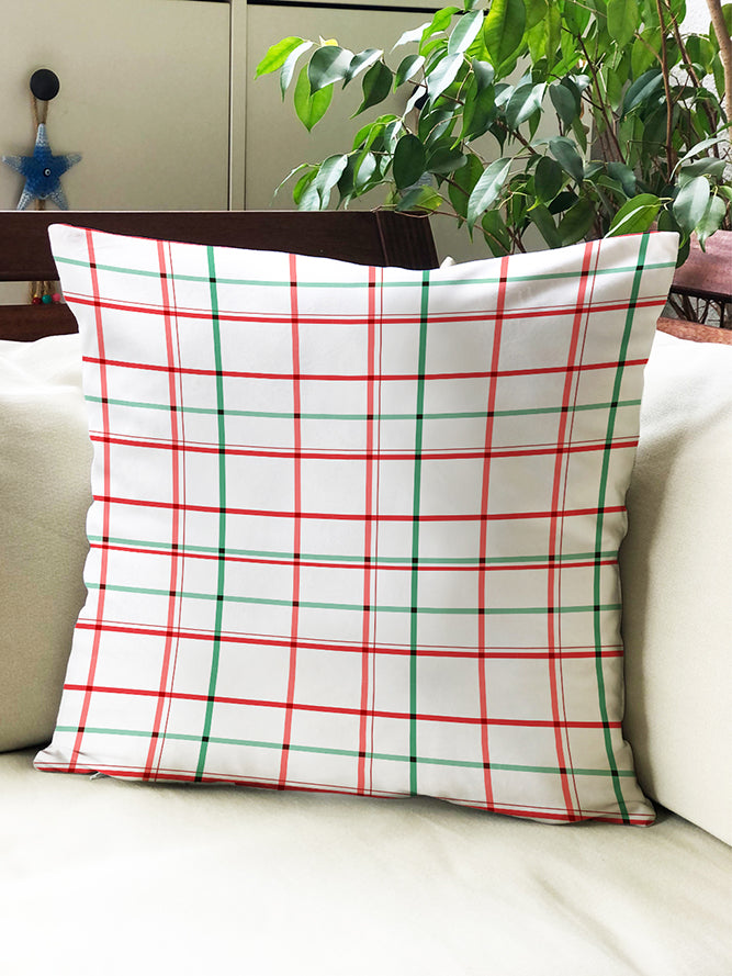 Milbay Kırmızı Yeşil Kareli Desenli Kırlent Kılıfı
