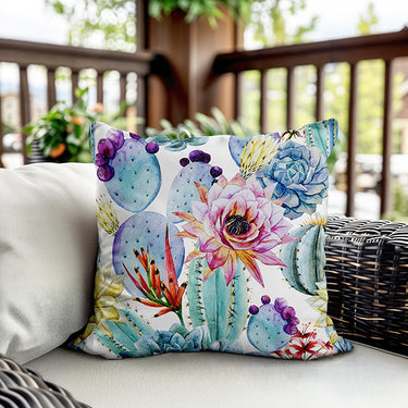 Milbay Çiçekli Kaktüs Bahçe Desenli Kırlent Kılıfı