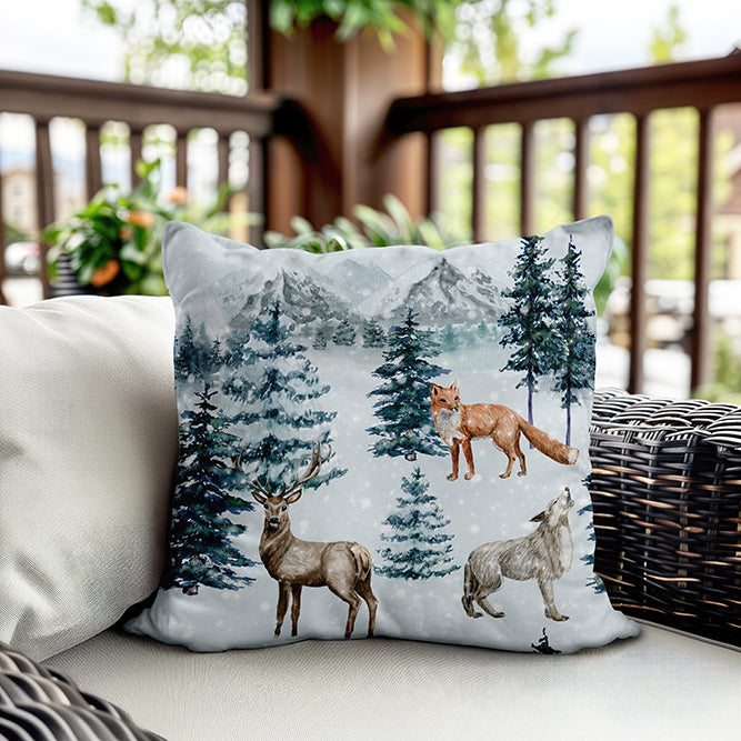 Milbay Kış Ormanı Hayvan Desenli Kırlent Kılıfı