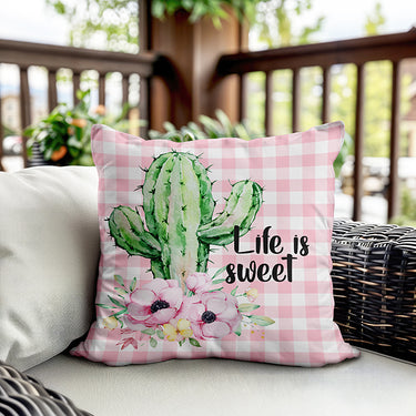 Milbay Pembe Kaktüs Çiçek Desenli Kırlent Kılıfı