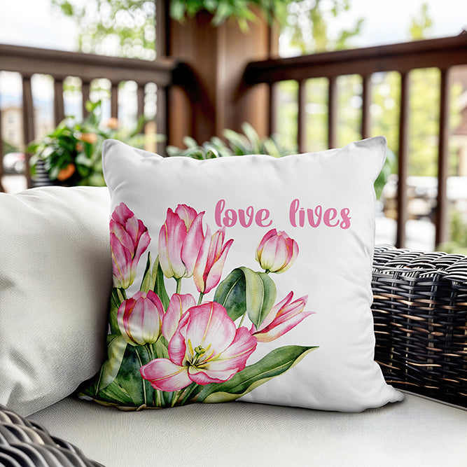 Milbay Pembe Lale Aşk Desenli Kırlent Kılıfı