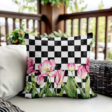 Milbay Pembe Laleler Satranç Desenli Kırlent Kılıfı