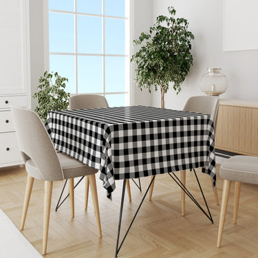 Milbay Klasik Siyah Beyaz Kareli Desenli Masa Örtüsü