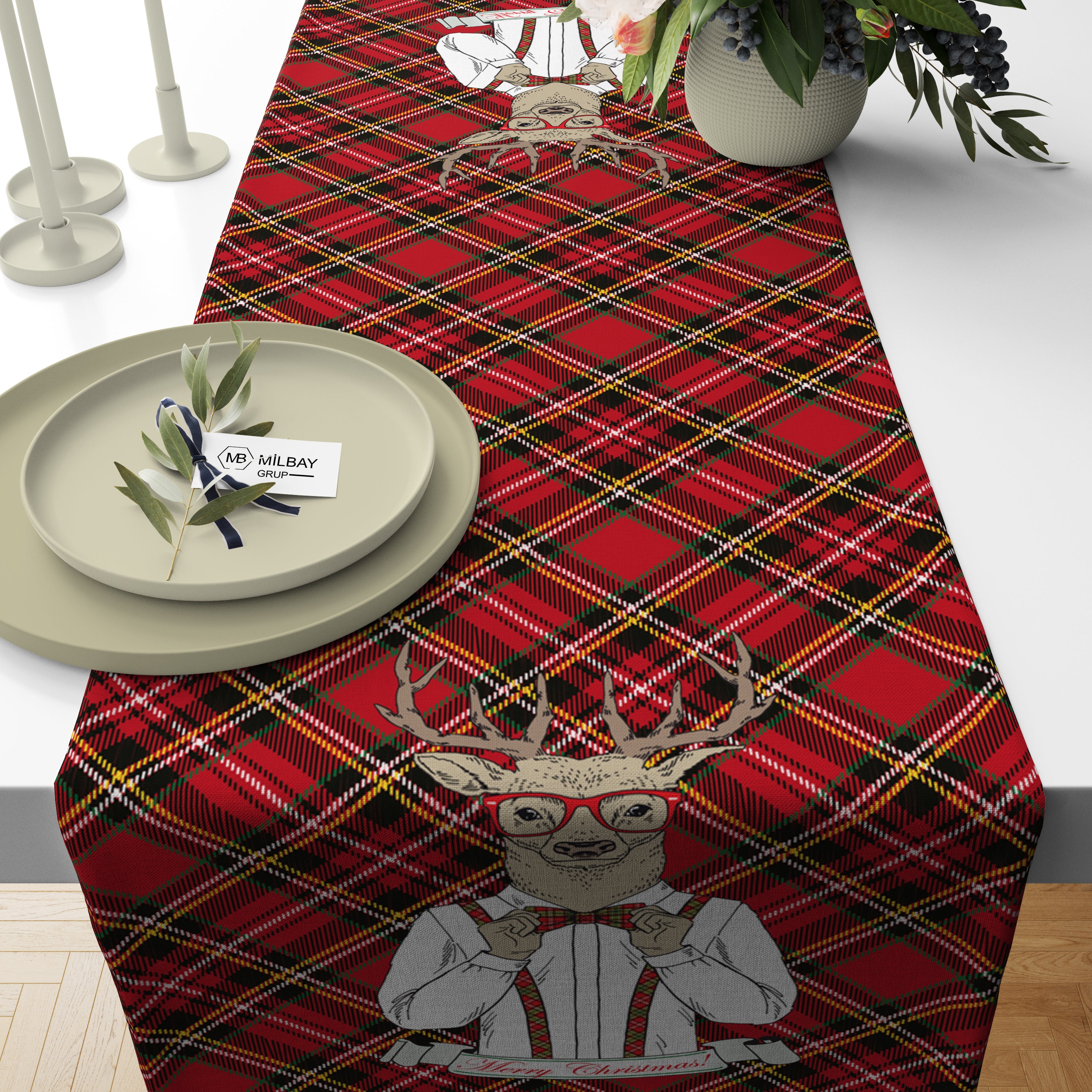 Milbay Kırmızı Ekoseli Geyik Desenli Runner