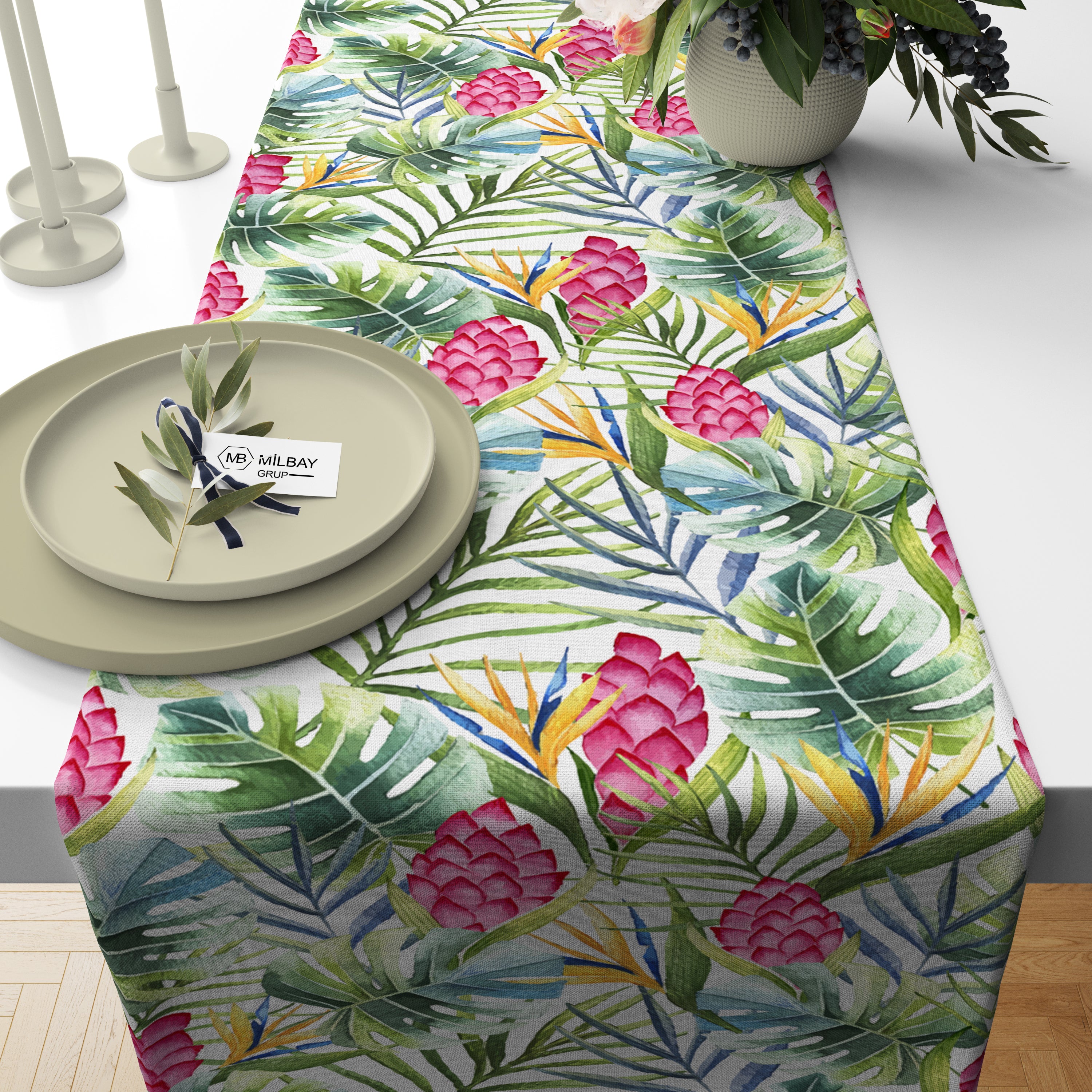 Milbay Tropik Yaprak Desenli Runner, oturma odası tekstili ve ev dekorasyonuna yeni bir soluk getiriyor. Bu harika ürünle, dekorasyon anlayışınızı bir üst seviyeye taşıyın.💫