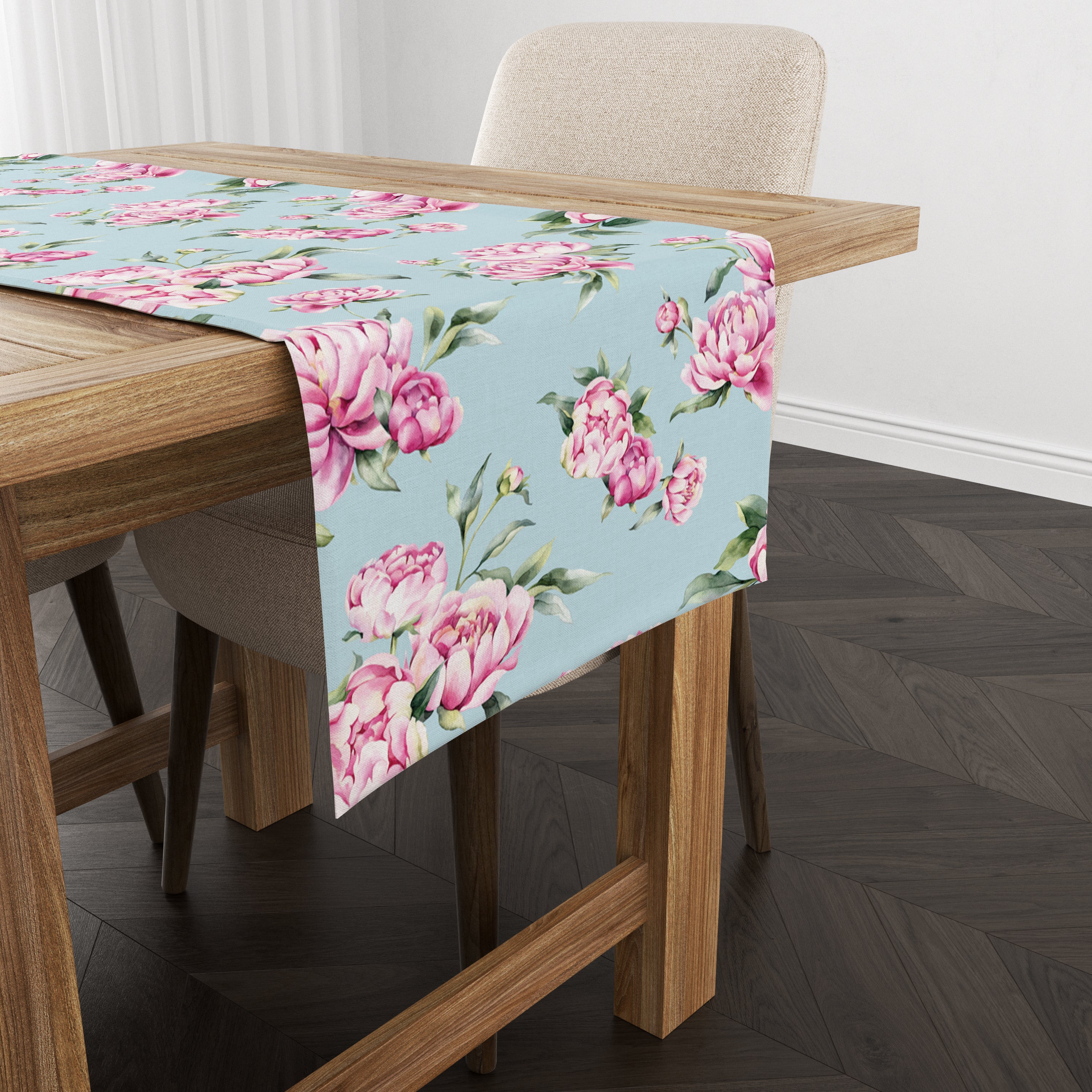 Milbay Pastel Pembe Çiçek Desenli Runner