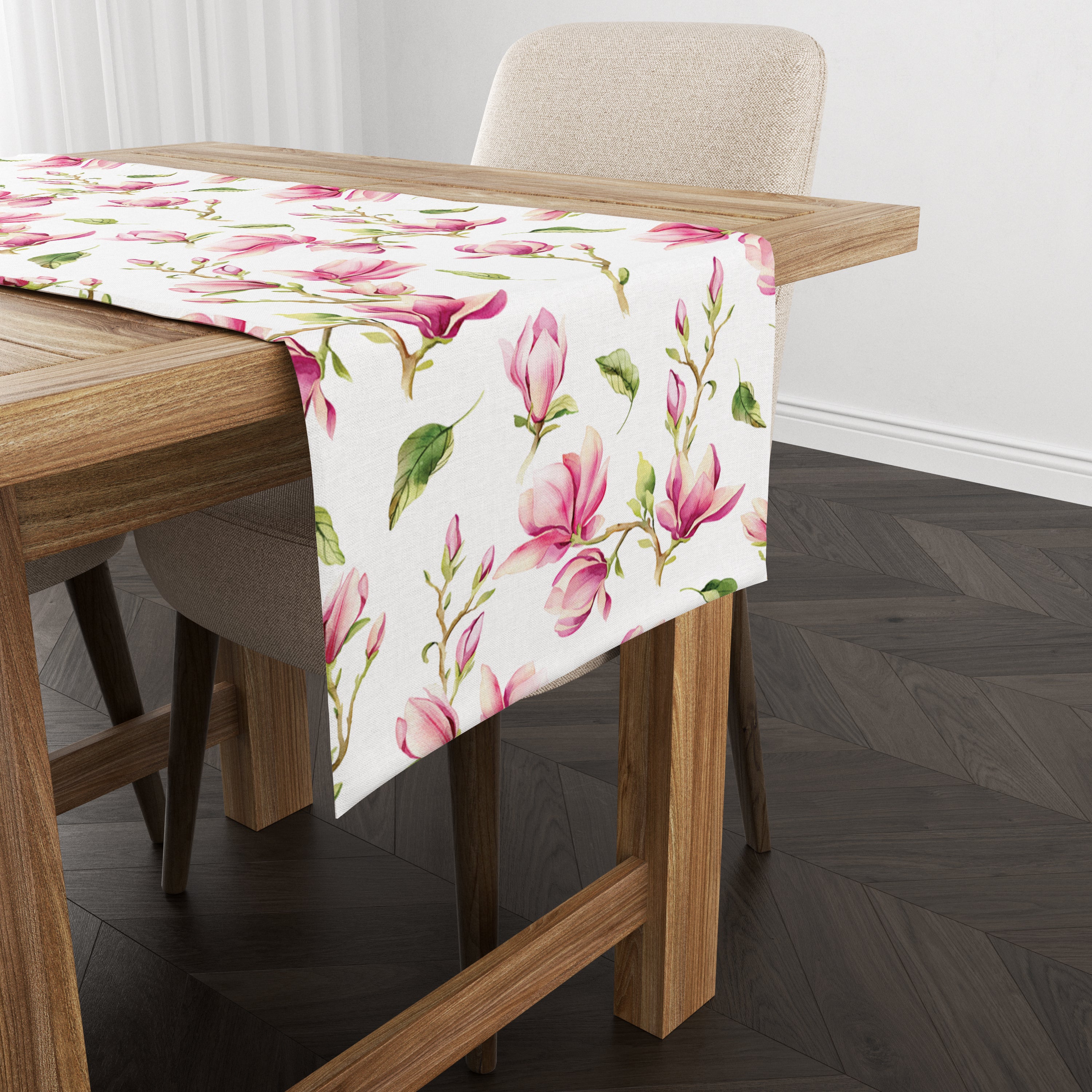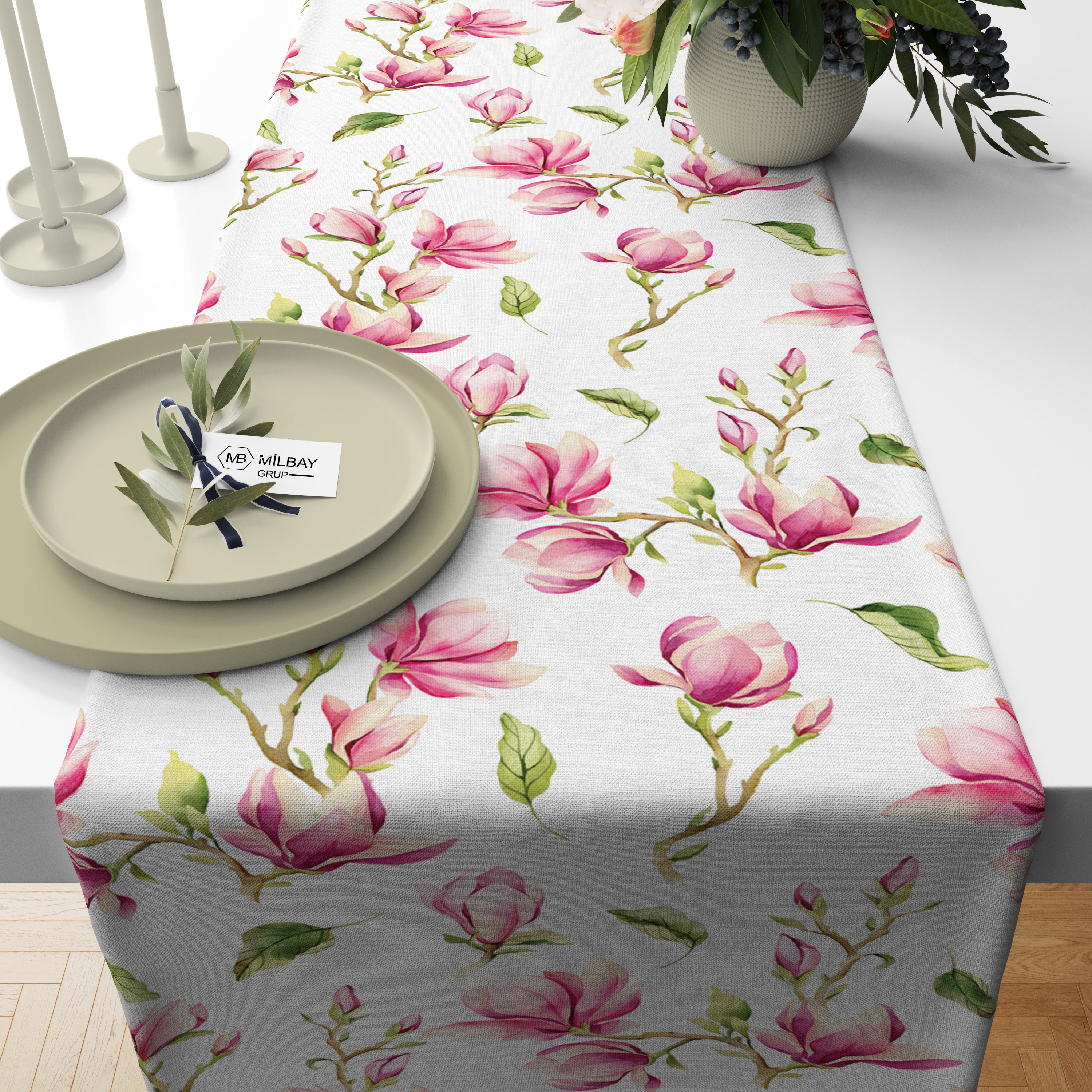 Runner kumaşı, kadife yumuşak dokusu ile ev dekorasyonunuza lüks bir hava katacak. Oturma odanızda, yemek masanızda ya da çalışma masanızda kullanabileceğiniz bu runner, Magnolia çiçeğinin zarif ve huzur veren desenleri ile sizi büyüleyecek! 🌸