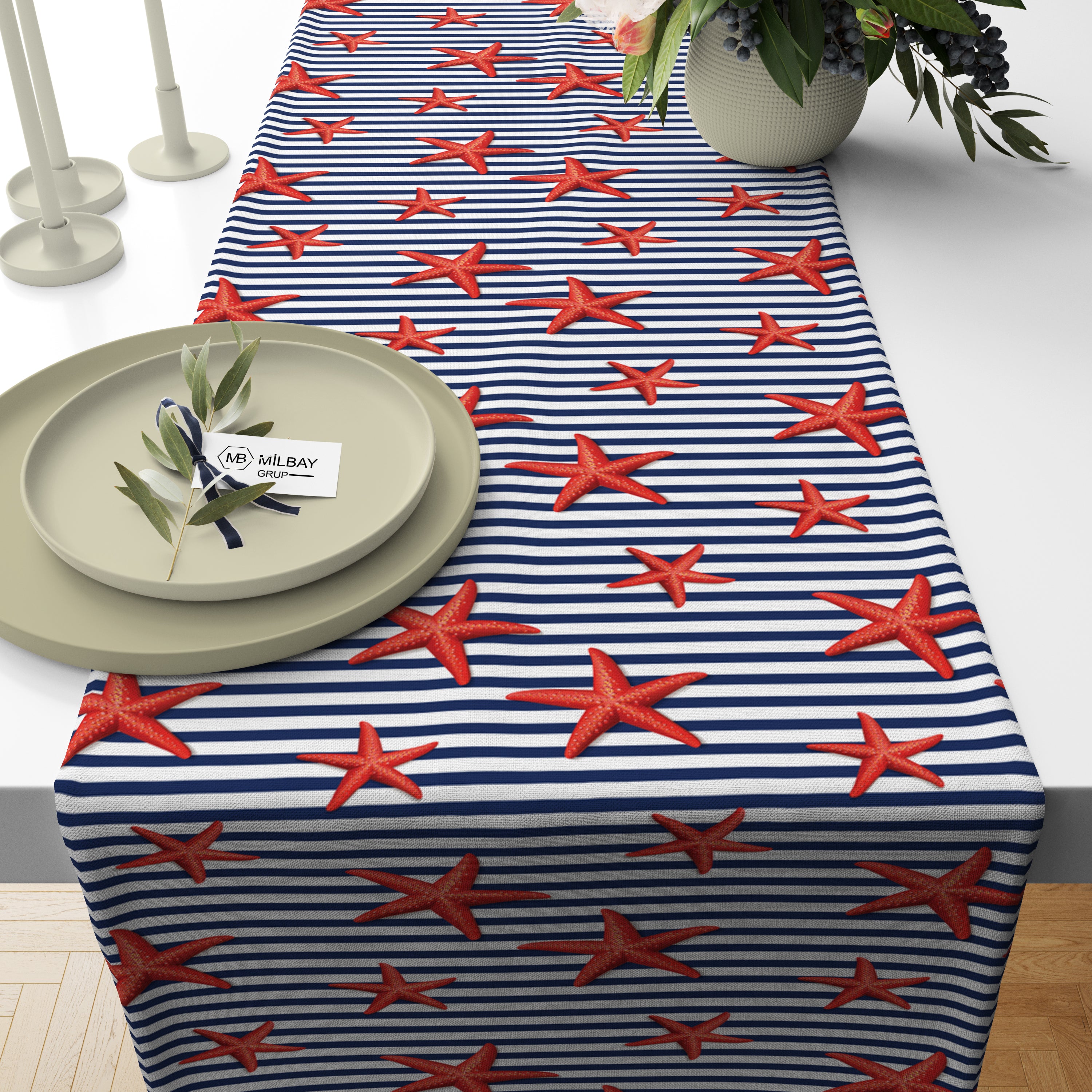👆 Bizim Runner, dijital baskı teknolojisi kullanılarak üretilmiştir. Bu sayede, kullanıma ve yıkamaya bağlı olarak solma yapmaz ve uzun süreli kullanım garantisi sunar. Bu ürünün çizgili deseni ve deniz yıldızı motifleriyle evinize ferah bir deniz esintisi getirin! 🏝️