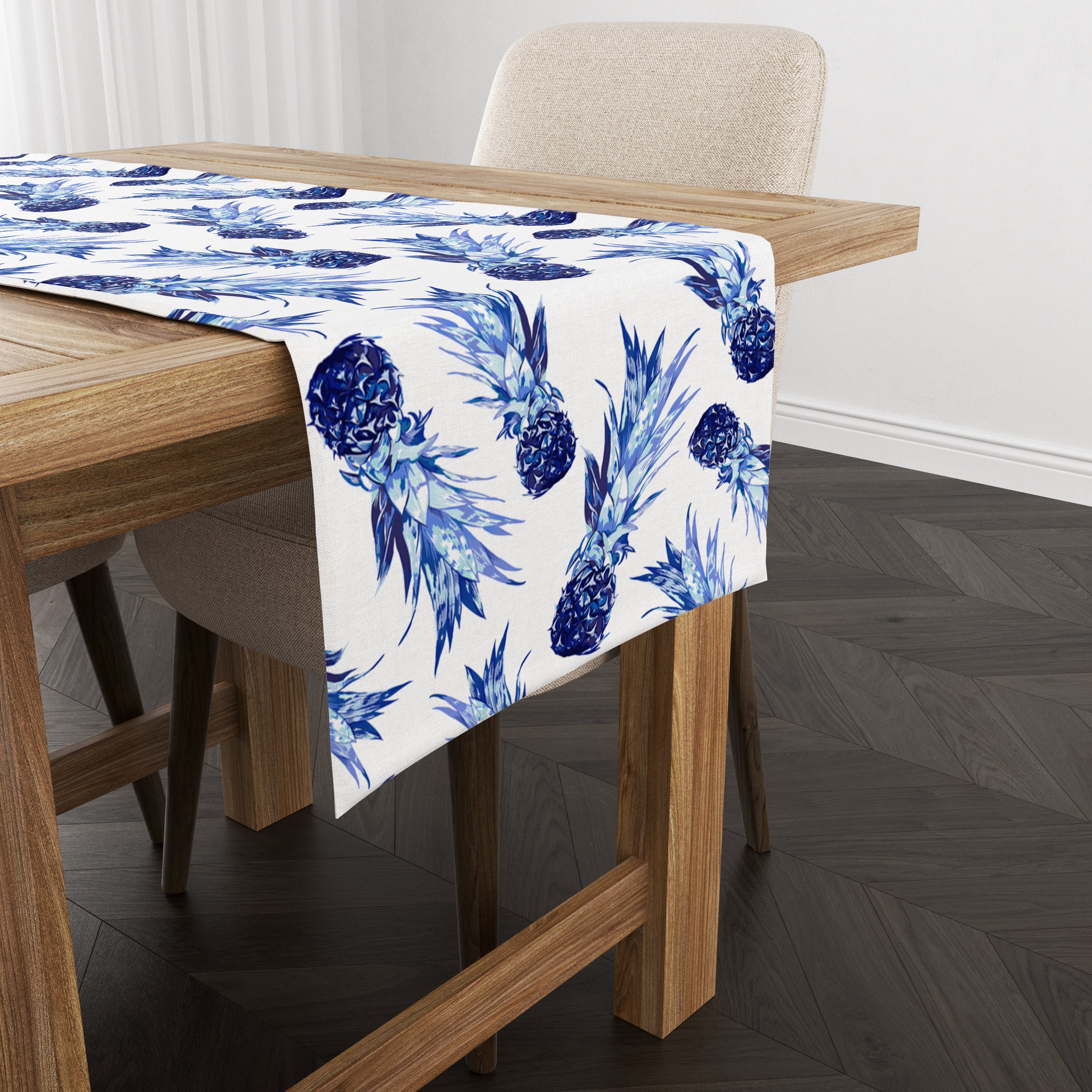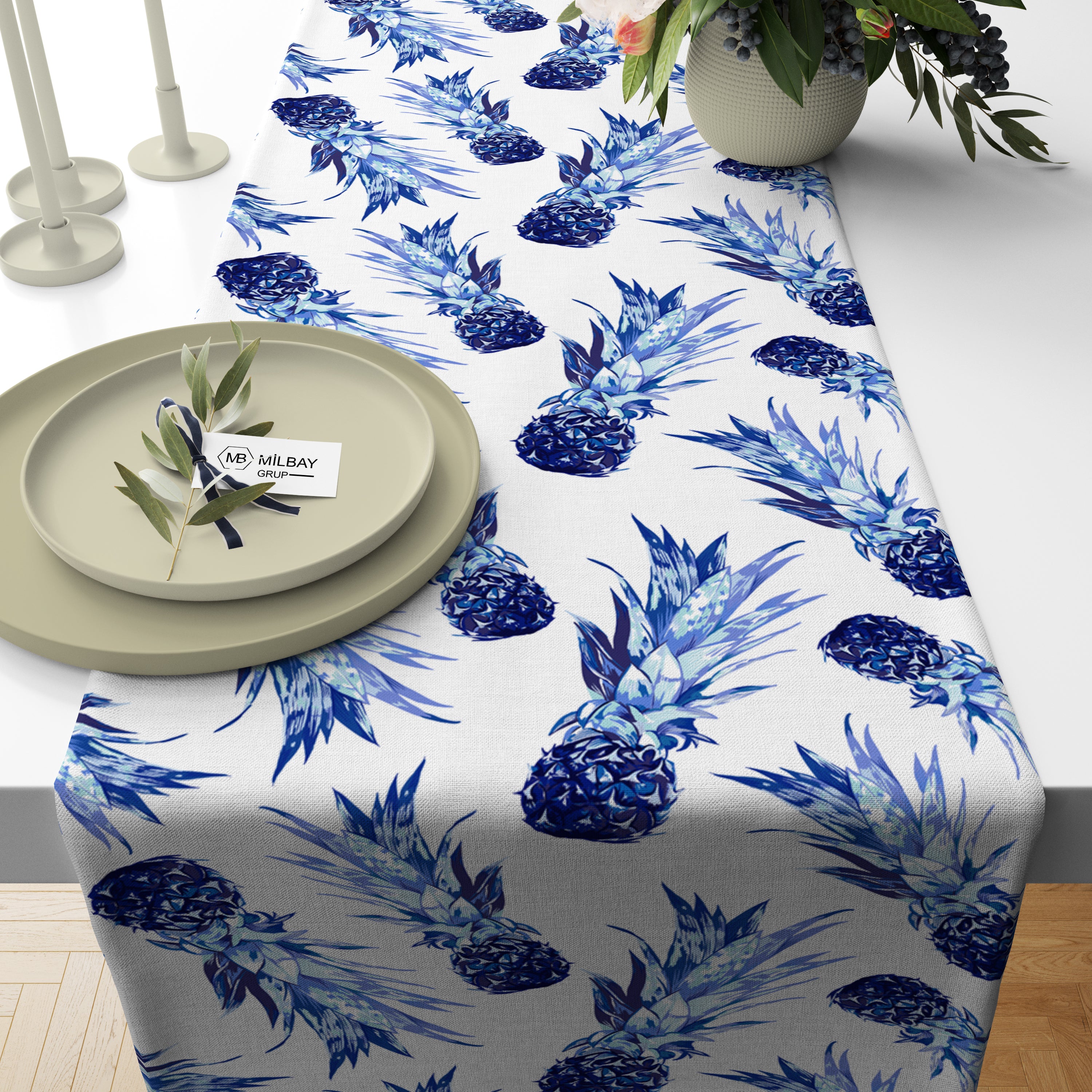 Milbay Tropik Mavi Ananas Desenli Runner