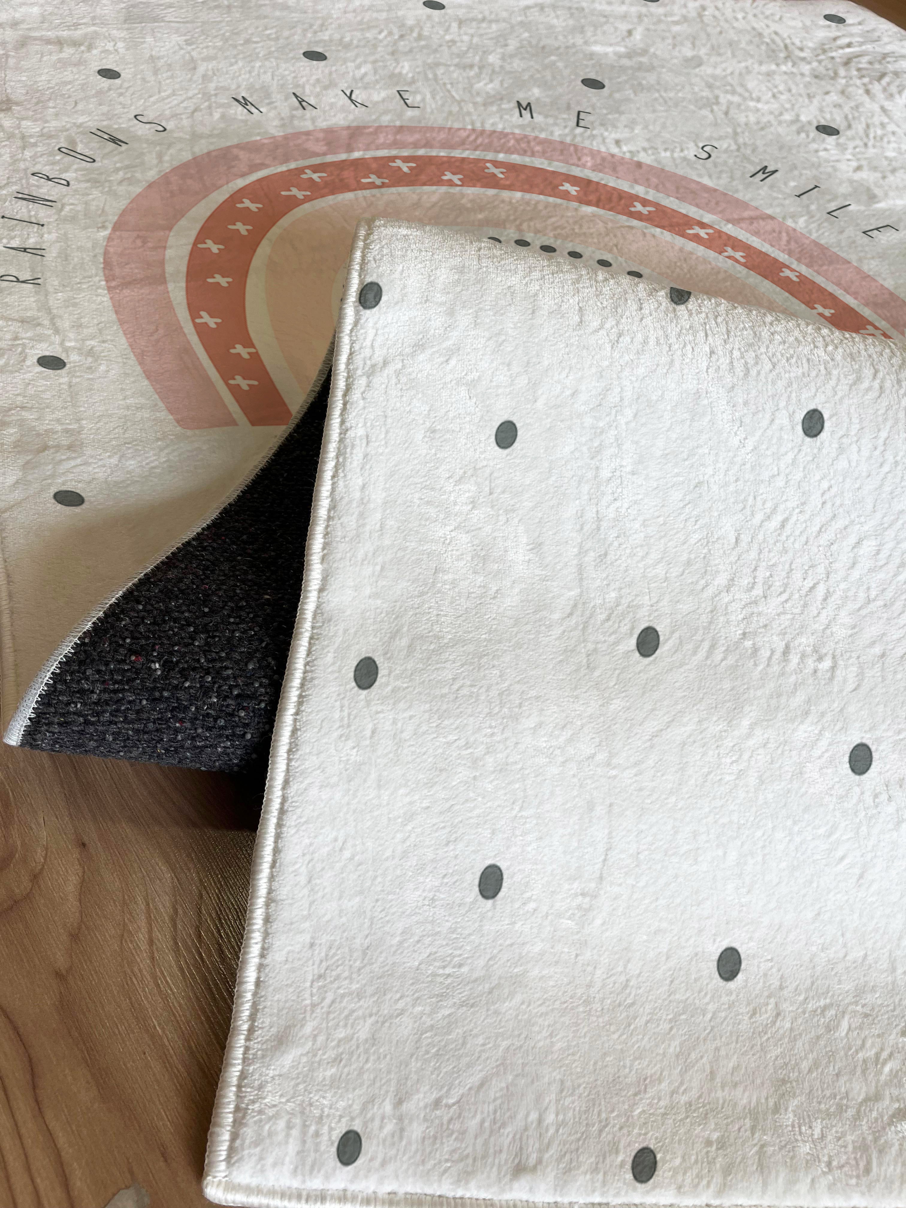 🌈 Milbay Gökkuşağı Kalp Desenli Çocuk Halısı ile çocuk odaları artık daha renkli! Bu özel tasarım halı, yumuşak bambu kumaşıyla çocuklarınızın ev içinde rahatça oynayabileceği bir alana dönüşüyor. Toptan baskılı halılarımız dijital baskı kalitesi ile çocuk odalarında harika bir görünüm sunuyor. Kaymaz çocuk halısı özelliği sayesinde çocuklarınızın güvenliği de düşünüldü. 💕