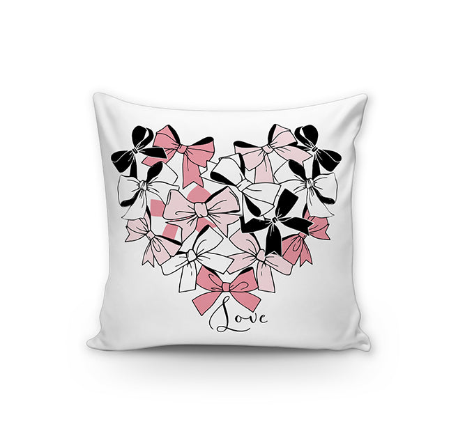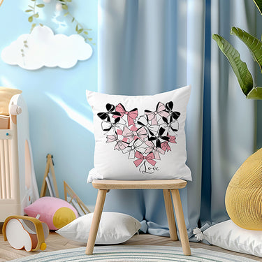 Milbay Pembe Siyah Fiyonk Kalp Desenli Kırlent Kılıfı