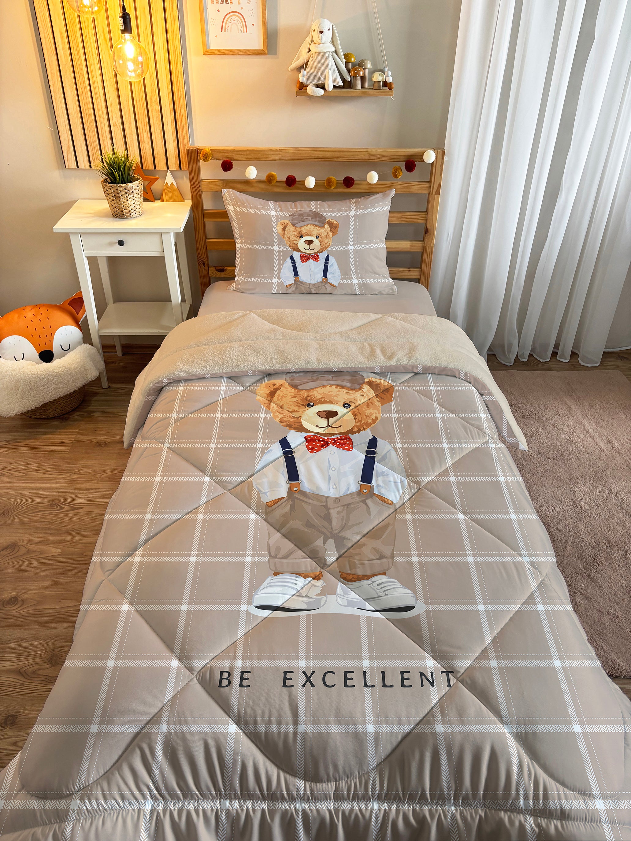 Milbay Şık Ayıcık Tasarımlı Desenli Peluş Yorgan