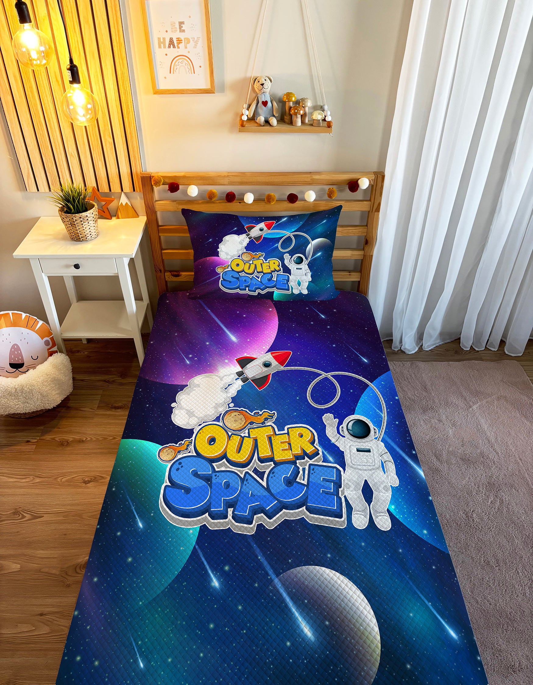 Milbay Uzay Keşif Desenli Pike, çocuk pike setlerimiz arasında en popülerlerden biridir. Ürün, 160x220 cm pike ve 50x70 cm yastık kılıfından oluşur. 🛌✨