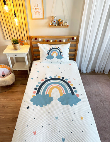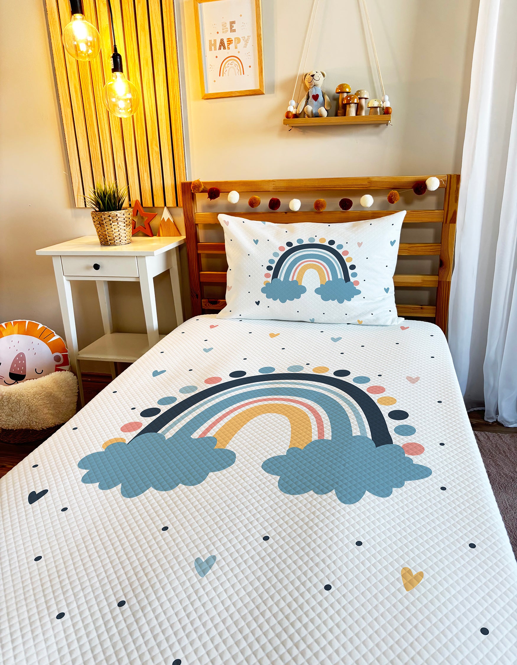 🌈🌤️ Milbay Gökkuşağı ve Bulutlar Desenli Pike Modelimiz çocuk odalarını renklendirecek! Bu özel pikemiz, evinizi dekore etmek ve çocuk odalarını canlandırmak için mükemmel bir seçim! 🏠👧