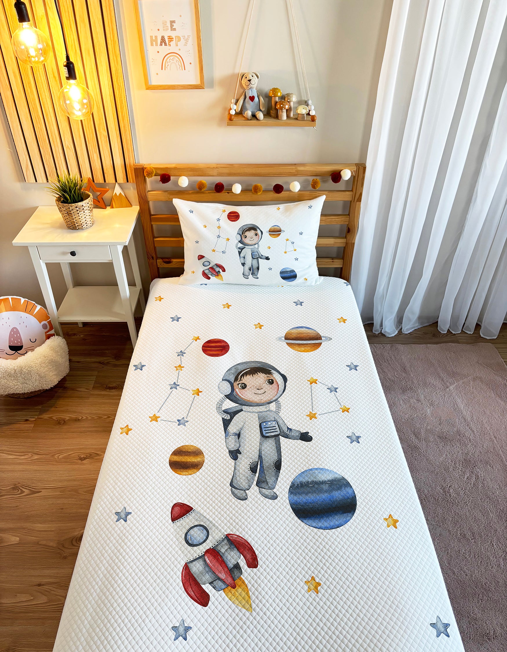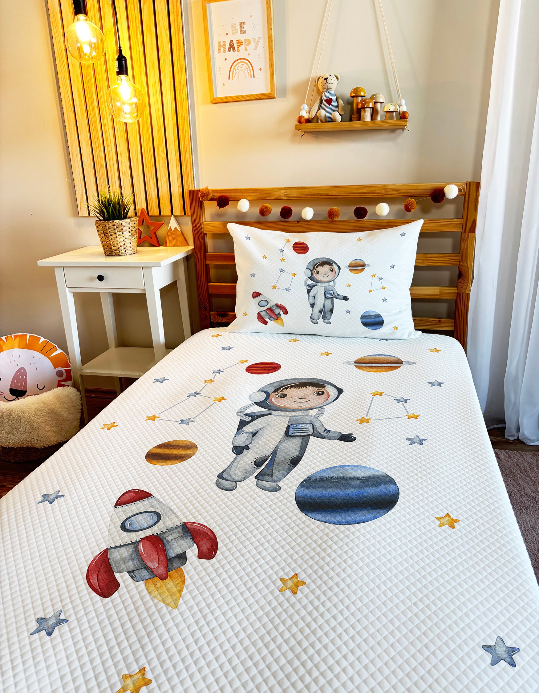 Milbay Uzay Kaşifi Desenli Pike Modeli ile çocuklarınızın odasında büyülü bir yolculuğa çıkmaya hazır olun! 🚀🌠🌟
