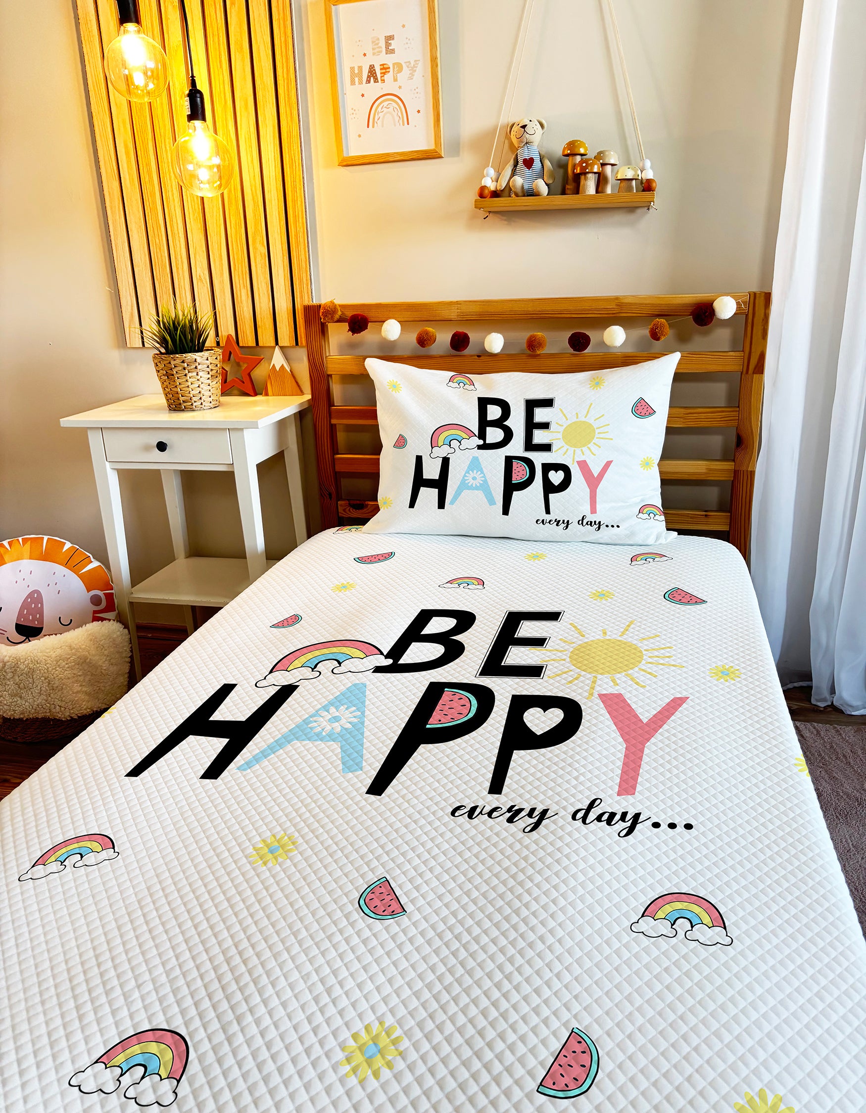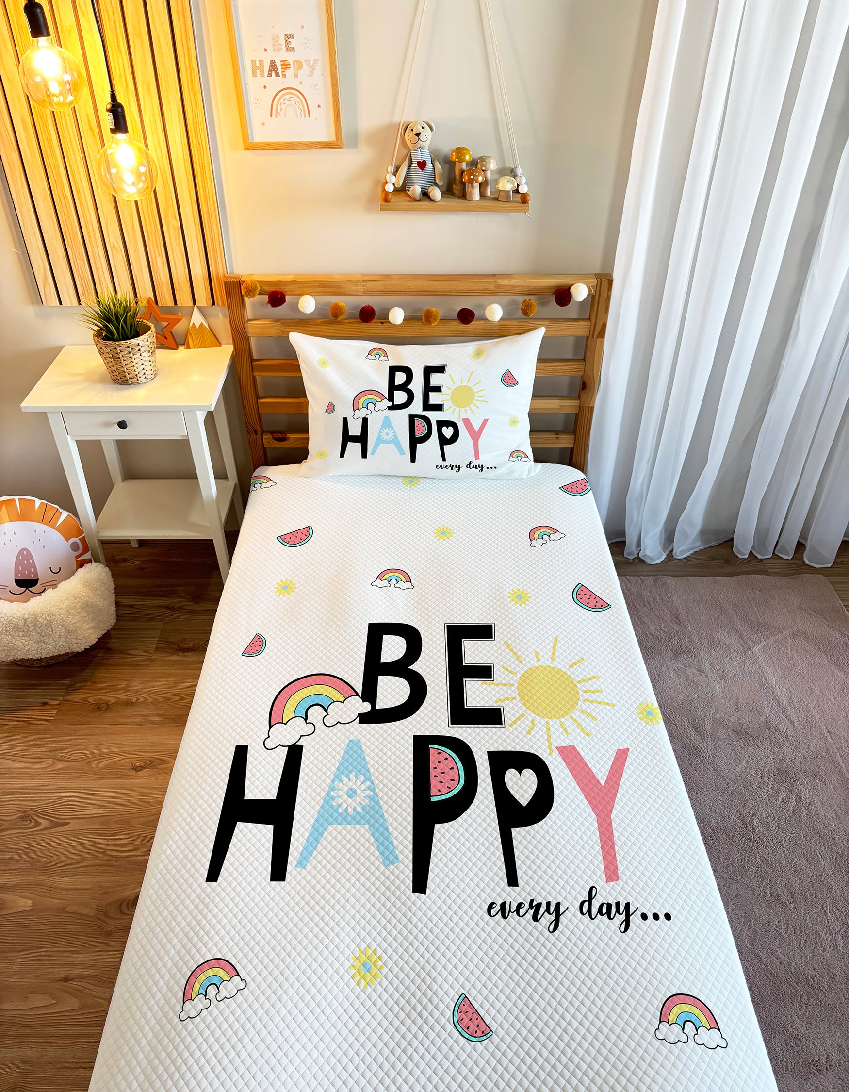 🌈🎈 ''Milbay Gökkuşağı Neşesi Desenli Pike Modeli'' ile çocuk odalarına neşeli bir dokunuş yapın! Çağdaş çizgiler, capcanlı tonlar ve benzersiz bir dokunuş ile çocuklarınıza masalsı bir atmosfer oluşturun. 🥳💜 Paylaştığı Gökkuşağı Neşesi ile çocuklarınızın uyanmak istemeyeceği bir yatak odası tasarlıyoruz! 💖✨