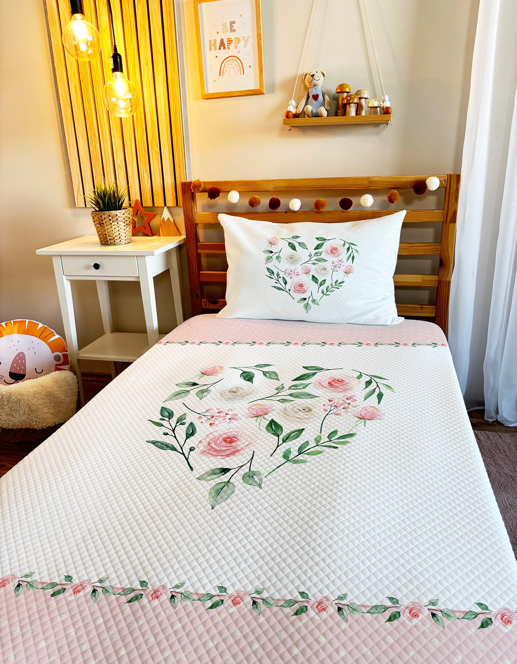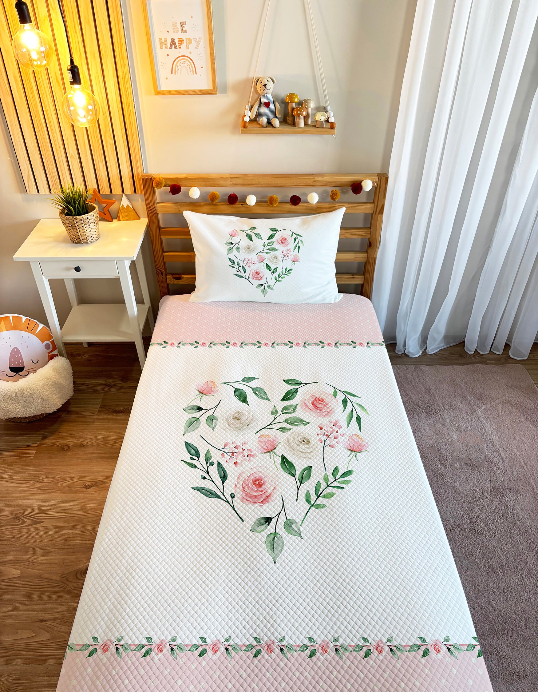 Çocukların hayal dünyasını tasarımlarımıza taşıdık, sizler de çocuklarınızın odalarını Milbay Çiçek Kalp Desenli Pike Modeli ile renklendirin! 🌈🥰