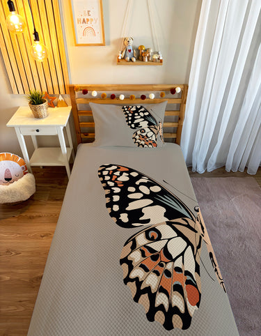 Kelebek Masalı Desenli Pike setimiz, 160x220 cm pike ve 50x70 cm yastık kılıfından oluşur. 🛌 Aynı anda hem çocuğunuzun rahatlığını hem de odasının estetiğini düşünerek tasarlanmıştır. Setin içerisinde çarşaf bulunmamakla birlikte, dilerseniz çarşaf kısmından ekleyebilirsiniz. 🌛