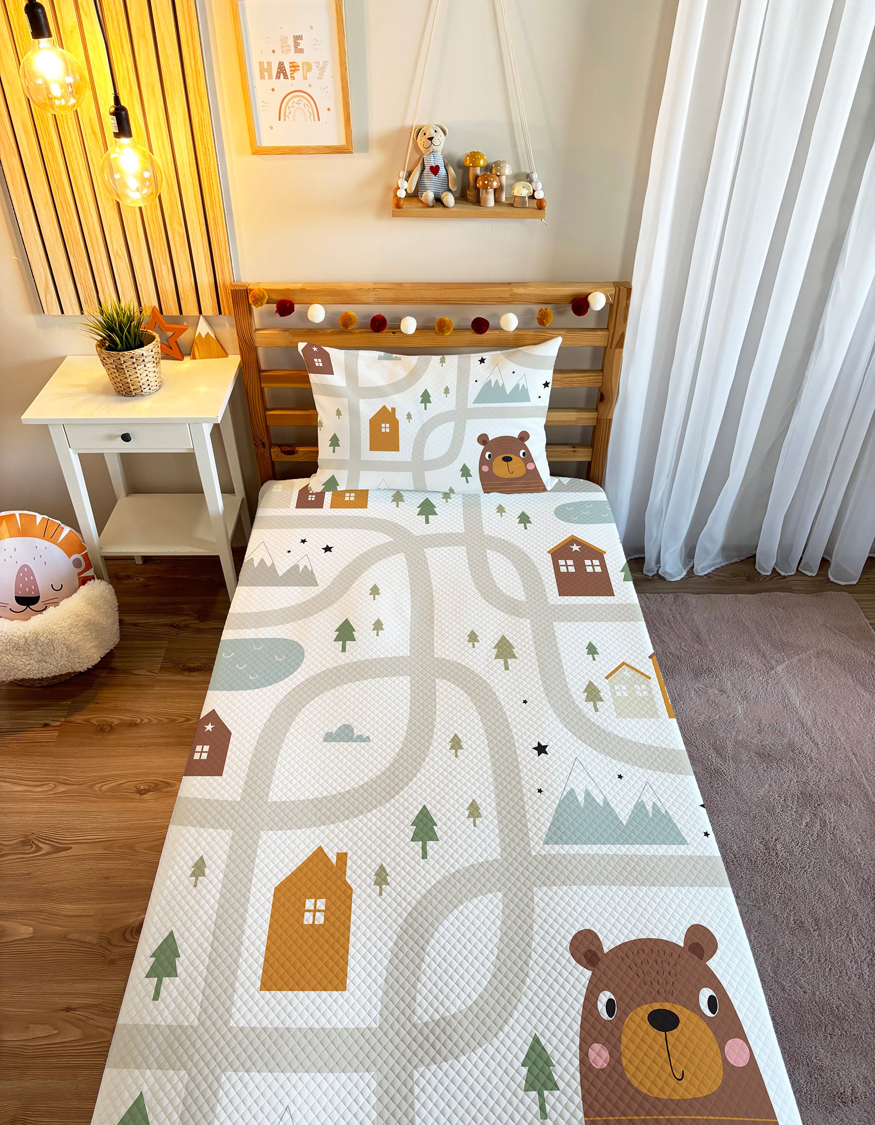 🐻 Milbay Sevimli Ayı ve Dağlar Desenli Pike Modeli 🏞 çocuklarınızın odasına mükemmel değer katmaya hazır! 🎈 Ev dekorasyon fikirlerinizi yenilerken, çocuk odası dekorasyonuna neşeli bir katkı sağlayacak bu ürün, dijital baskı teknolojisi ile canlı renklere ve net desenlere sahip. Bu sevimli ve eğlenceli pike modeli, çocuklarınızın odasını göz alıcı bir hale getirirken, onlara da kucak dolusu konfor ve rahatlık sunar🍭. Toptan pike satışı hizmetimizle, bütçenizi sarsmadan tüm evinizi yenileyebilirsiniz💫.
