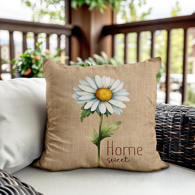 Milbay Papatya Home Sweet Desenli Kırlent Kılıfı
