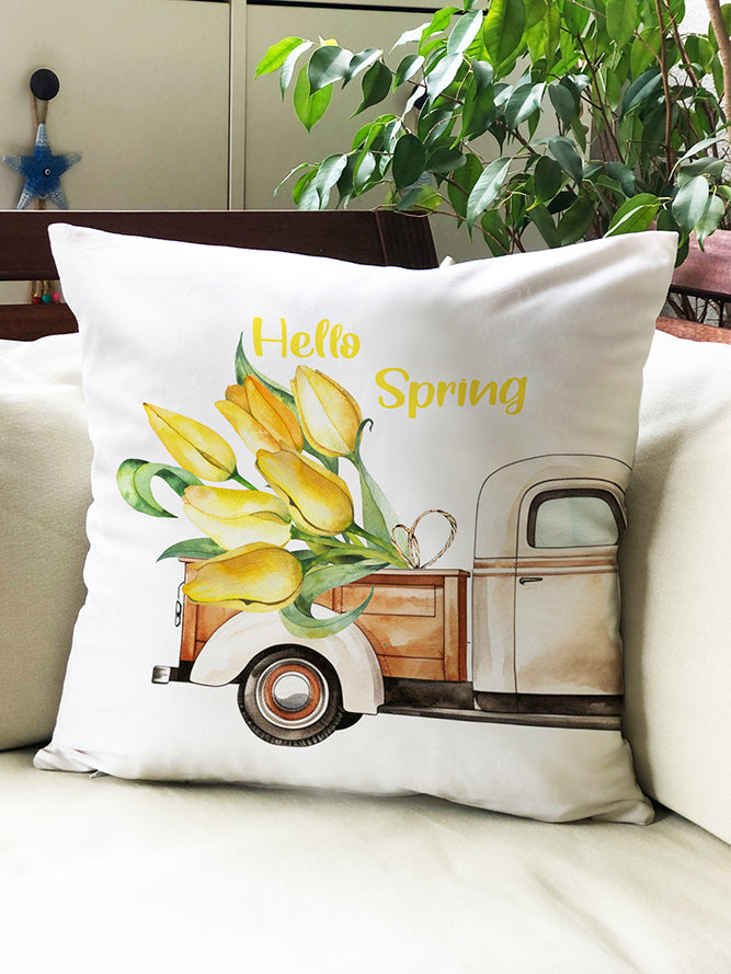 Milbay Bahar Kamyonu Desenli Kırlent Kılıfı