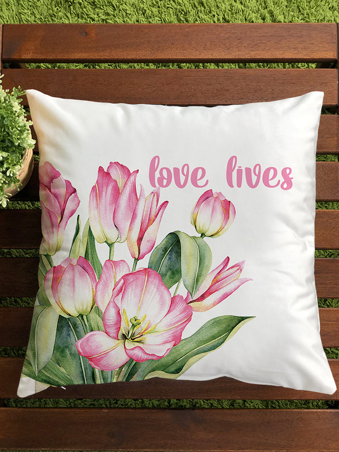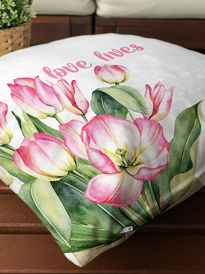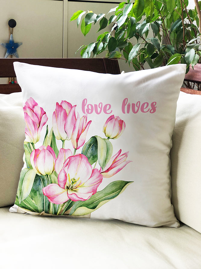 Milbay Pembe Lale Aşk Desenli Kırlent Kılıfı