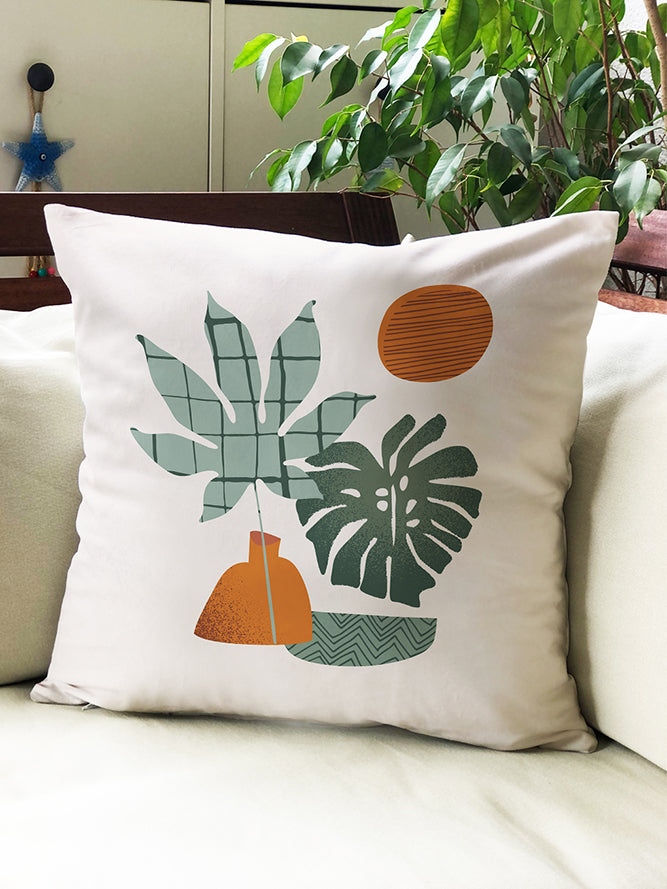 Milbay Yaprak Motifli Desenli Kırlent Kılıfı