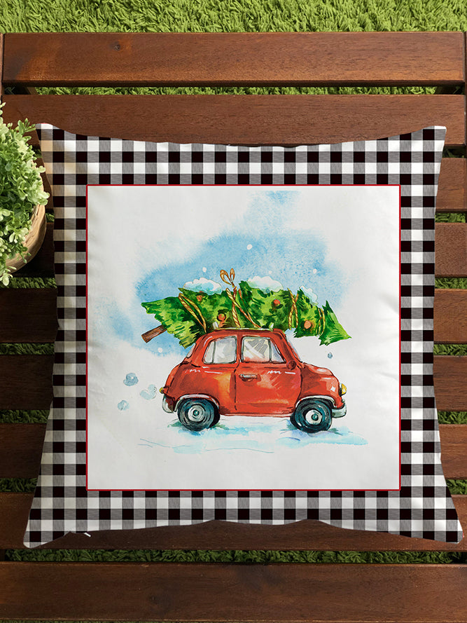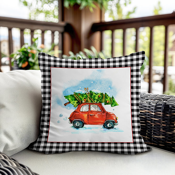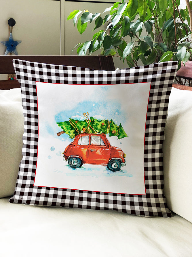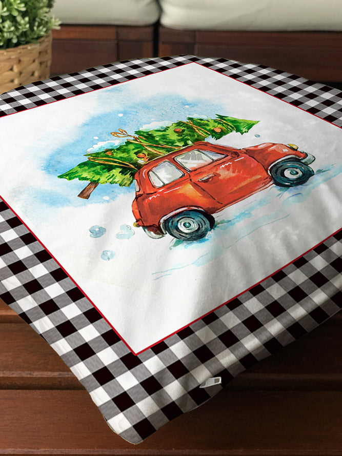 Milbay Kırmızı Araba Yılbaşı Desenli Kırlent Kılıfı