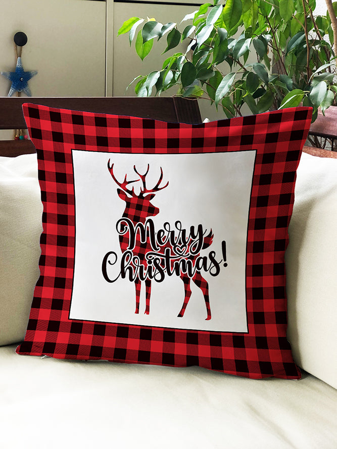 Milbay Noel Geyik Ekose Desenli Kırlent Kılıfı
