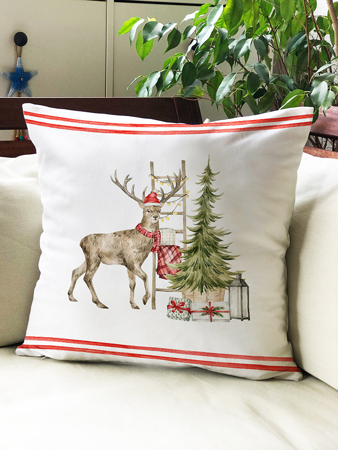 Milbay Kış Geyikli Desenli Kırlent Kılıfı