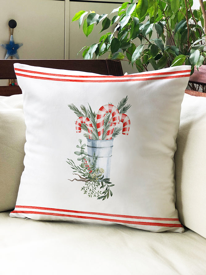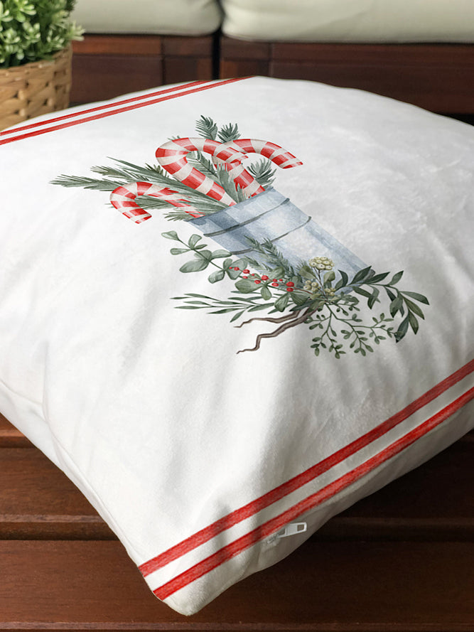 Milbay Şeker Kamışı Noel Temalı Desenli Kırlent Kılıfı