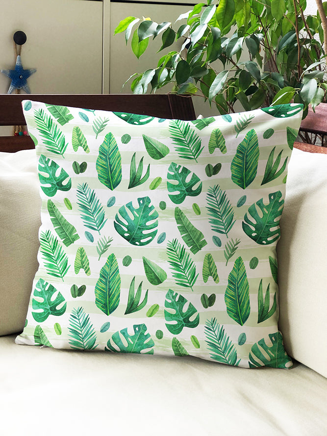 Milbay Tropik Yeşil Yaprak Desenli Kırlent Kılıfı