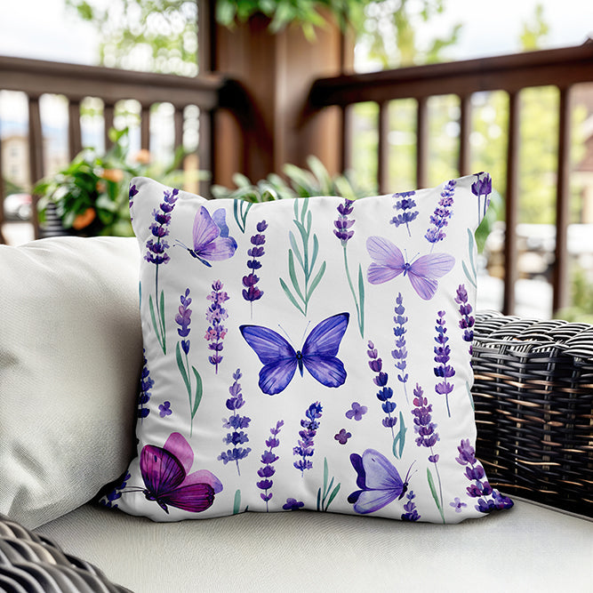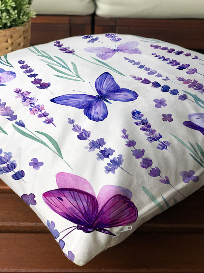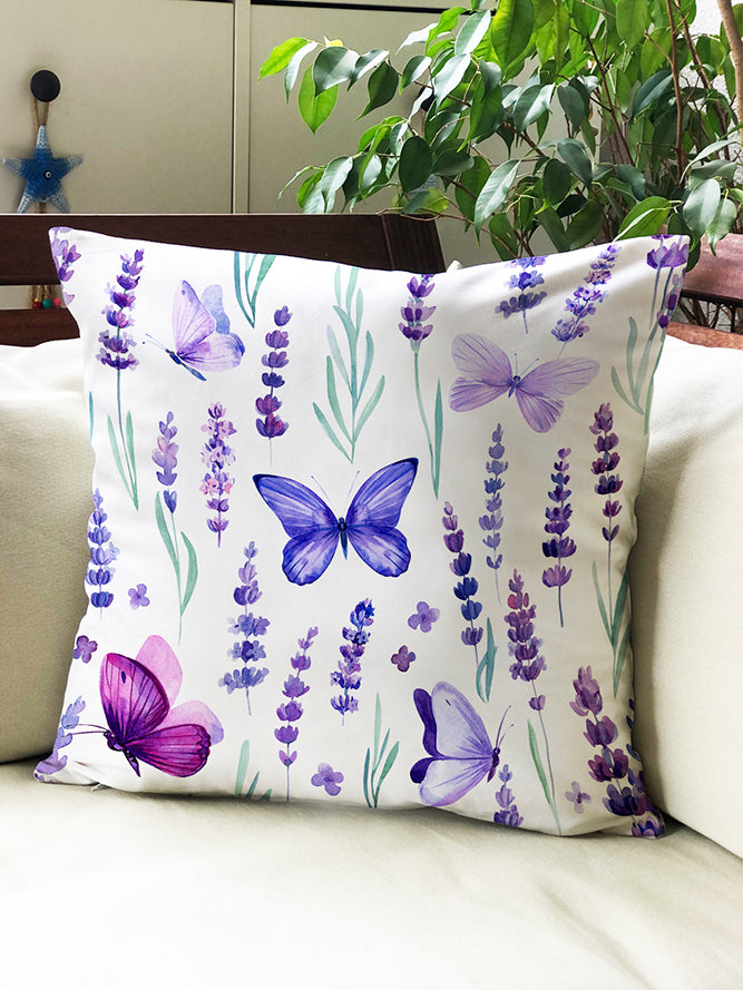 Milbay Lavanta Kelebek Desenli Kırlent Kılıfı