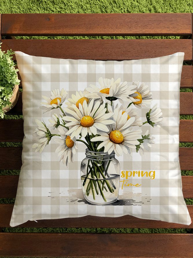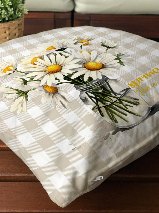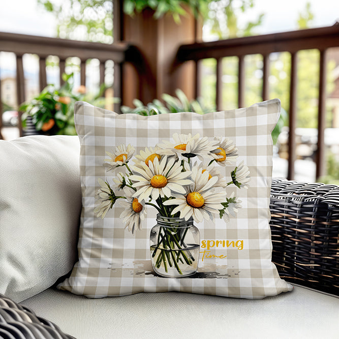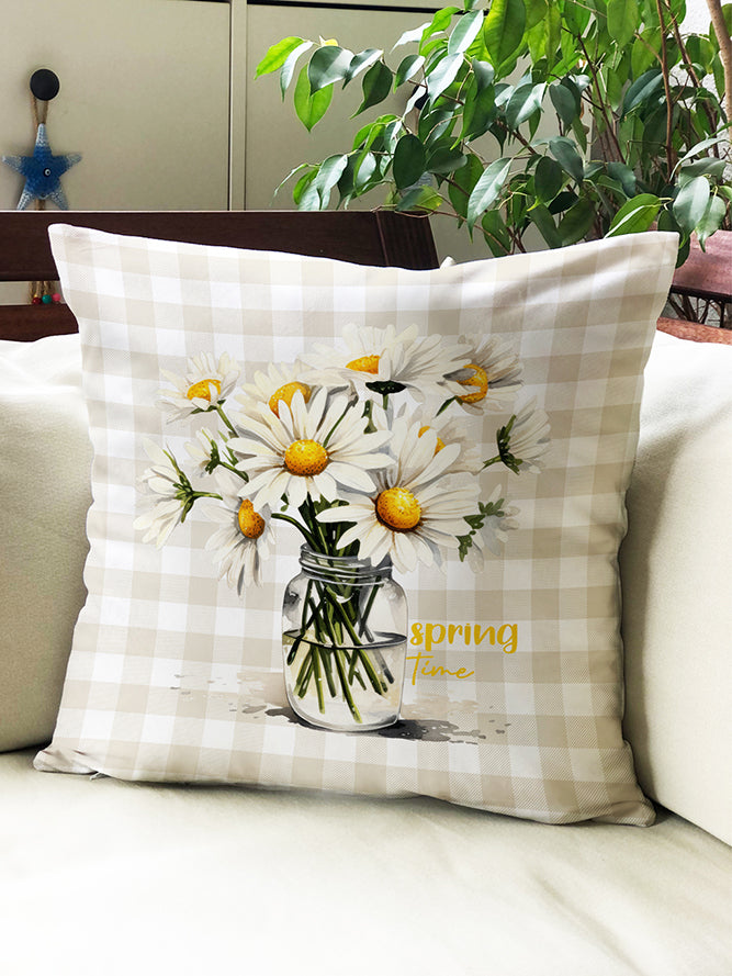 Milbay Papatya Vazosu Çizgili Desenli Kırlent Kılıfı