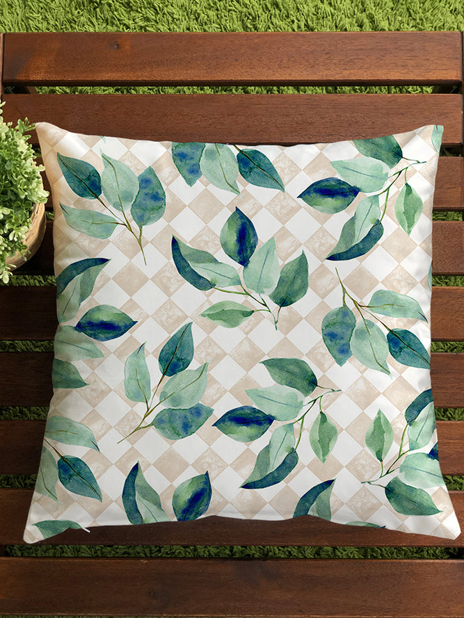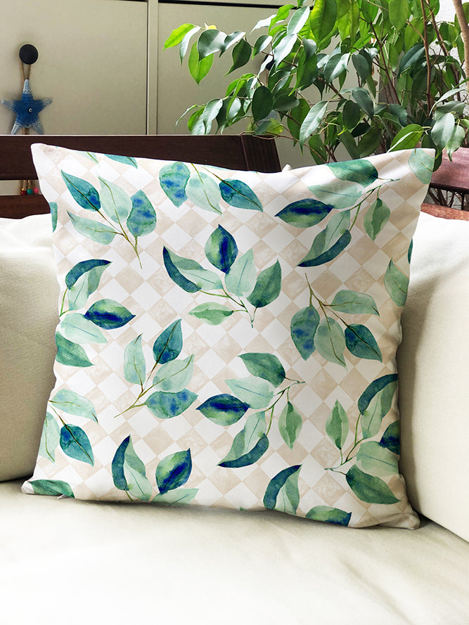 Milbay Yeşil Yaprak Desenli Kırlent Kılıfı