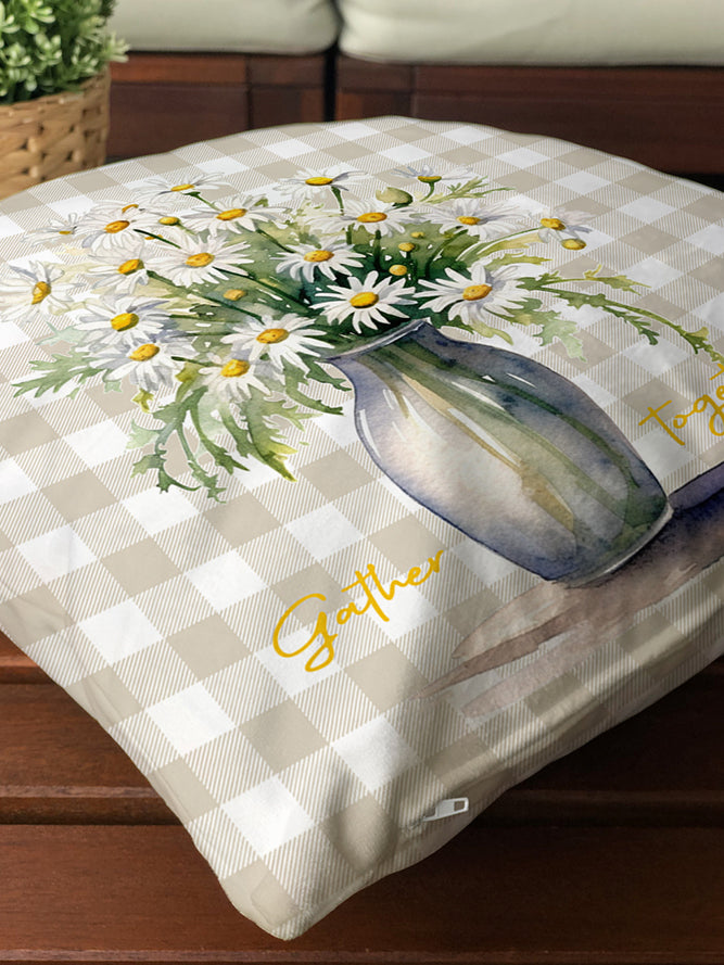 Milbay Papatya Vazolu Desenli Kırlent Kılıfı