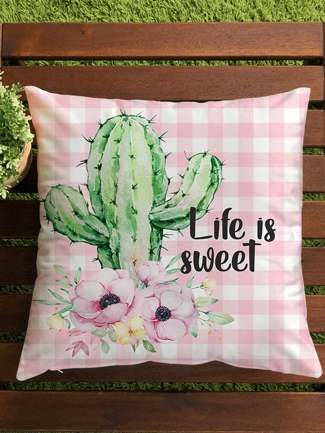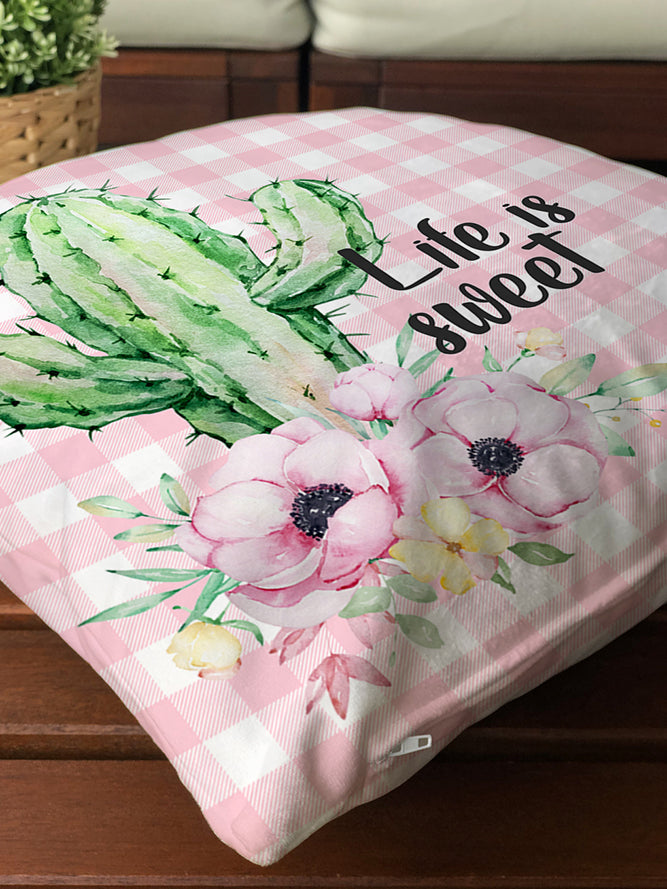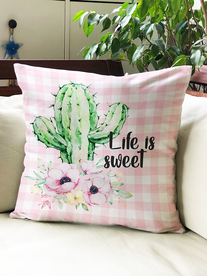 Milbay Pembe Kaktüs Çiçek Desenli Kırlent Kılıfı