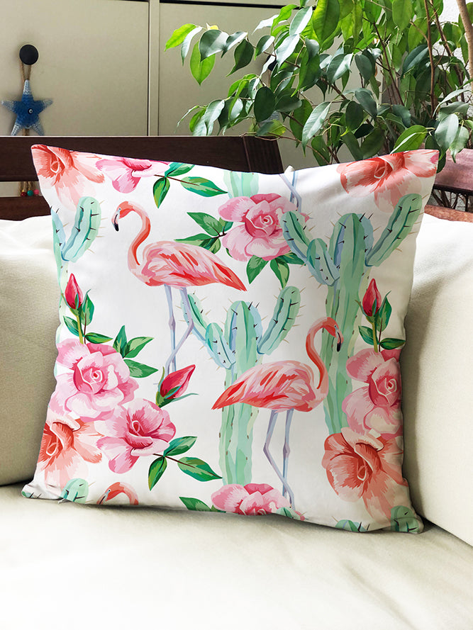 Milbay Tropikal Flamingo Çiçekli Desenli Kırlent Kılıfı