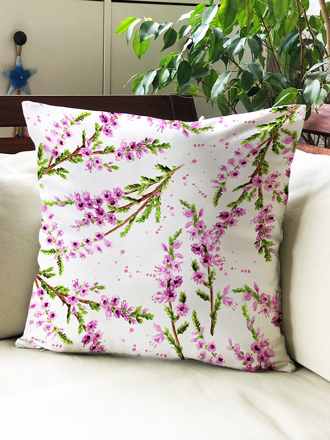 Milbay Mor Çiçekli Desenli Kırlent Kılıfı