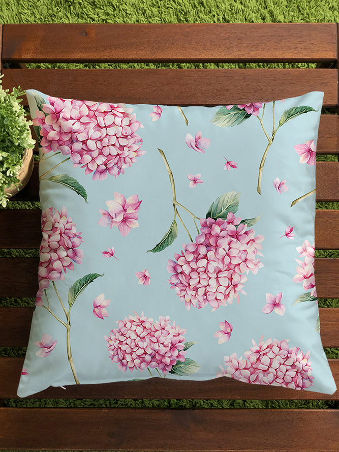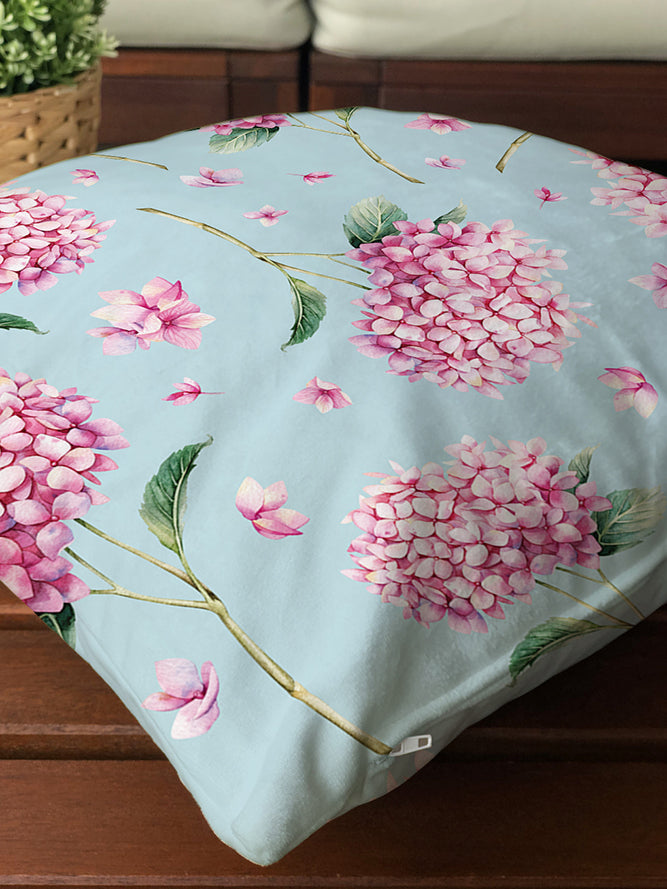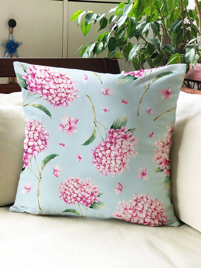Milbay Mavi Ortanca Çiçekli Desenli Kırlent Kılıfı
