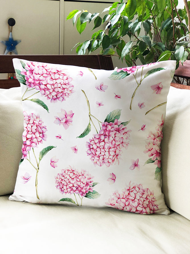 Milbay Pembe Ortanca Desenli Kırlent Kılıfı