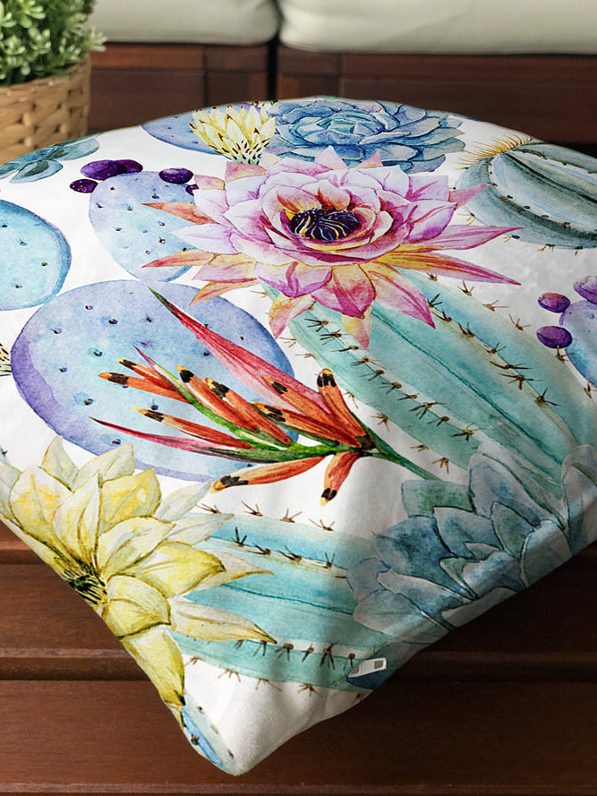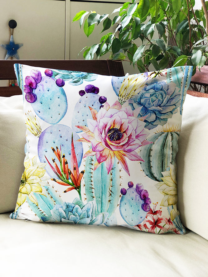 Milbay Çiçekli Kaktüs Bahçe Desenli Kırlent Kılıfı