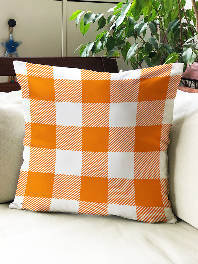 Milbay Turuncu Kareli Desenli Kırlent Kılıfı