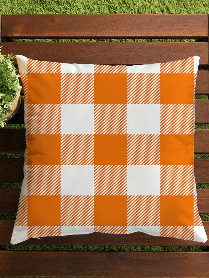 Milbay'ın turuncu kareli desenli kırlent kılıfı, ev dekorasyonunun neşeli bir parçası olacak! 🏠🎉