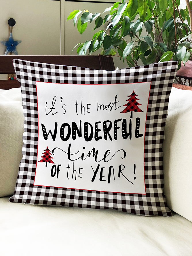 Milbay Kış Temalı Ekose Desenli Kırlent Kılıfı