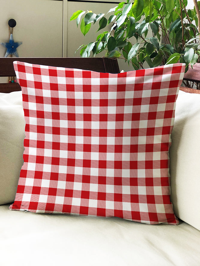Milbay Kırmızı Beyaz Ekose Desenli Kırlent Kılıfı